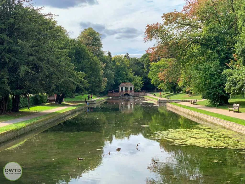 We enjoyed a wonderful walk here, where dogs are allowed off-lead to roam the woodland behind the car park before heading across the lake to the on-lead area. Even though it was quite busy during our visit, it was still a pleasant experience, including a stop at the café. After crossing the road to Russell Gardens, another on-lead zone, we were glad the dogs had to stay on lead—ours would have been straight into the ponds otherwise! At the far end of the gardens near the play area, you can continue on to Bushy Ruff, a quieter spot with beautiful views over the lake. Here, dogs can go off-lead, but they’re not allowed in the water, so we kept ours lon lead and let them have a run in the woods behind the lake instead.