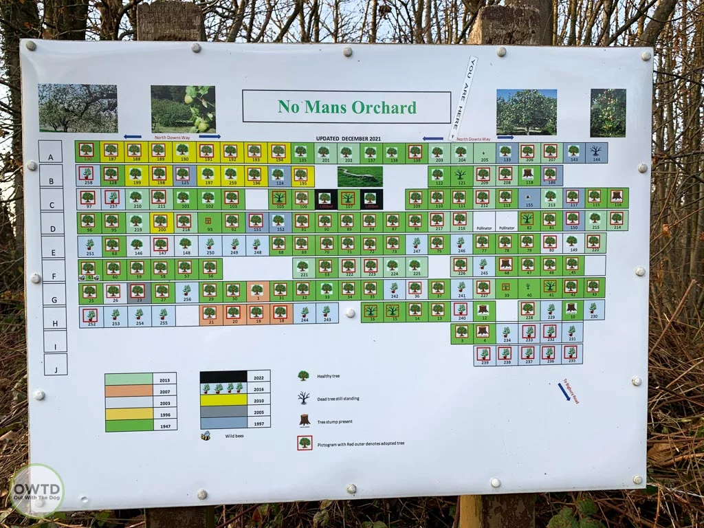 Access to the orchard is via Chartham Hatch Recreation ground off Bigbury Road and follow the signs for the North Downs Way and pass through some woodland before reaching the orchard.