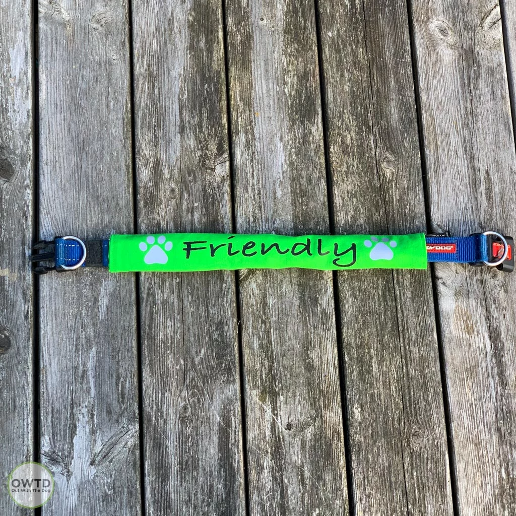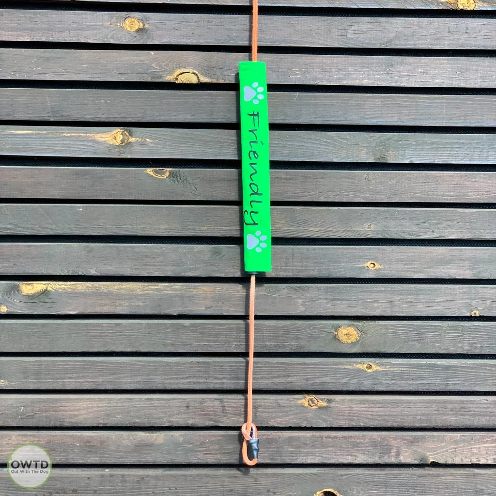 The Friendly Lead Cover is a great way to tell other people that your dog is friendly and they can approach your dog. This is a great if you also have a nervous or reactive dog aswell as it informs other walkers which of your dogs they can approach and which one needs some space. With Reflective paw prints to show up at night and a strip of hook and loop down the back they can be moved easily to different leads or onto a collar.