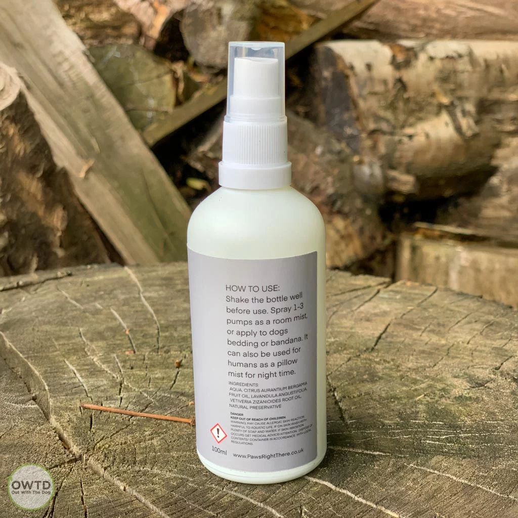 Shake bottle well before use. Spray 1-3 pumps as a room mist into the air/room/car, or you can also apply to dogs bedding, spray from a minimum of 6 inches away. Can also be used as a pillow mist for for humans to aid sleep.
