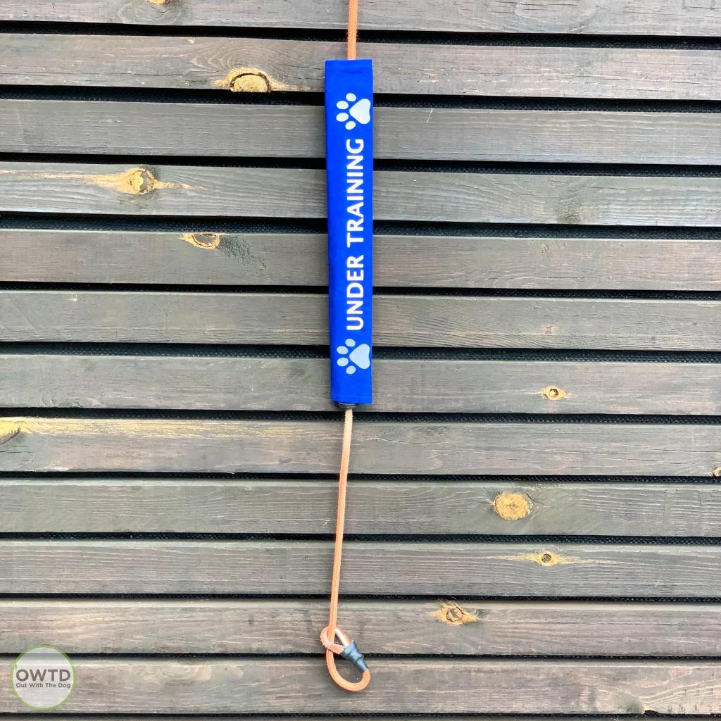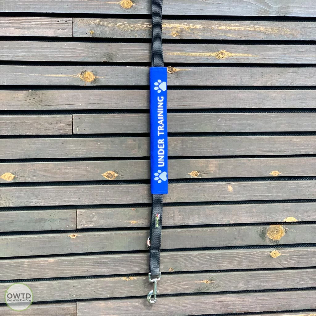 Fed up with other people coming up to say Hi to your new dog and interupting your dog training? If so then The Under Training Lead Cover is a great way to tell other people that your dog is having some training and should not be disturbed. With Reflective paw prints to show up at night and a strip of hook and loop down the back they can be moved easily to different leads or onto a collar.